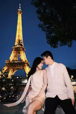 After dusk, the sky gradually turns a deep blue, and Paris enters its most romantic moment. The breeze blows gently, the Seine River flows quietly, and the Eiffel Tower in the distance flickers with warm light. Press the shutter at this moment to freeze the eternity of love.