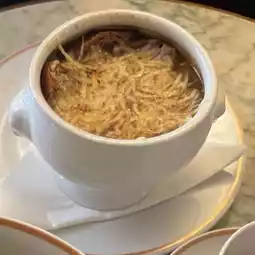 The cheese and onion soup is delicious. The onion soup is very rich and the melted cheese is very fragrant🧅