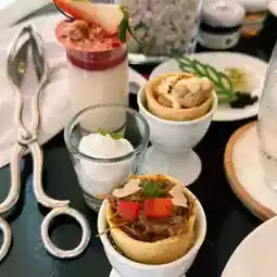 The tea set comes with a variety of desserts, all created by five-star hotel chefs, and they're both beautiful and delicious.
