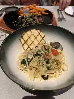 We ordered a mix of dishes, including pasta and steak, both of which were outstanding. The steak was perfectly cooked and tender, while the pasta was rich in flavor, creating a wonderful balance to our meal. As a special surprise, the staff brought out a beautiful birthday cake for my husband. It was such a thoughtful touch, and he was absolutely delighted. It made the evening feel even more special.