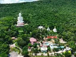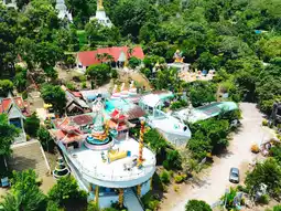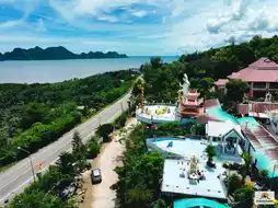 Located on a hill by the sea, this temple is a perfect blend of Thai and Chinese art. There is a large Guan Yin statue, a nine-headed Naga Buddha, and a prominent golden church. The atmosphere is quiet and the sea view is beautiful. Inside, there is also a coffee shop called “Luang Ta Pha Phloen” where you can go up and enjoy the view from a high angle. It is suitable for making merit and relaxing.