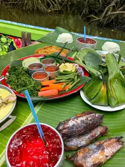 We took a peaceful boat ride along the Di Chae River, passing mangroves and soaking in the quiet beauty of the surroundings. The best part was lunch, they called it Nasi Ideh Kampung, was served on the boat – a spread of Malay kampung-style dishes like deep-fried ikan selayang, ikan masak lemak, ulam with sambal and budu, paku masak lemak, and telur dadar. Everything tasted so delicious and flavourful, just like how it's authentically made in the kampung.