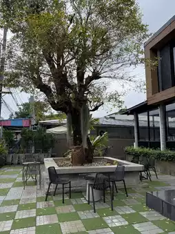 Owly Cafe is a cafe that serves both drinks and food. It is a shop with a good atmosphere, airy and very inviting. There are both indoor and outdoor seating areas to choose from. The color scheme of the shop is cool and beautiful in black. There are many photo spots. I personally like the southern tea at this shop a lot. It is strong and not too sweet. The tea is not colored. It is very good. There are many beverages to choose from. When friends come to visit Pattani, pin this shop on your must-visit list. 🧋