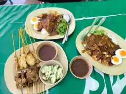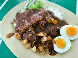 Atmosphere & Location - Satay Bang Leh, the Original, Pattani, is a simple, casual steakhouse with a few tables inside. Parking is available on the street. The restaurant focuses on chicken and beef satay, grilled fresh from the grill. The chicken satay is tender and melts in your mouth. The beef satay is fragrant and tender, and delicious. The restaurant's signature dipping sauce is incredibly rich and flavorful. Another recommended dish is Ro Yao (Ro Yao), a spicy salad-like dish filled with rice vermicelli, fried tofu, fried shrimp, and a boiled egg. The dish is then topped with satay sauce. Mix them together before eating. It's incredibly delicious and rich.