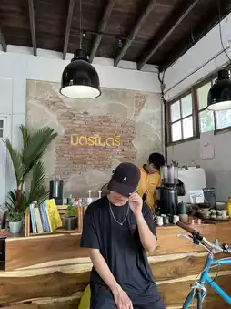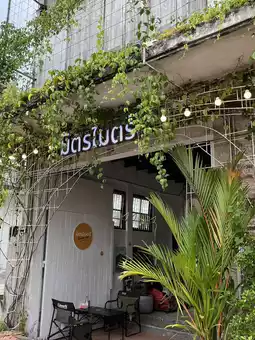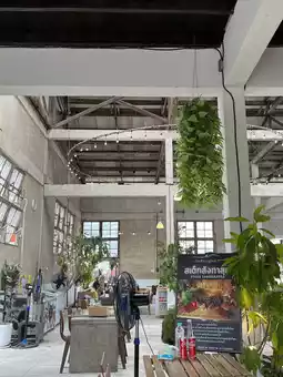 A cool cafe in a renovated warehouse, offering an open-air atmosphere with both air-conditioned and open-air areas for relaxing. 🪴
