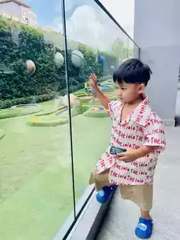 Another must-visit spot when staying at this hotel. The shop is decorated to match the hotel's space theme, but when you look outside, you'll see a small golf driving range in a green area on the spaceship filled with a wide variety of teas and various snacks. 🌱🍰🍫☕️🫖