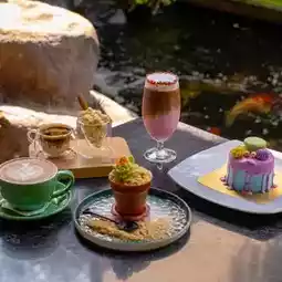 The shop is spacious with many seating areas to choose from, both indoor and outdoor. The outside area is next to a large koi pond and you can also feed the fish. The shop has a wide selection of food, drinks and bakery items. The food is both Thai and European, as well as fusion. The food at the shop is delicious and has a rich flavor.