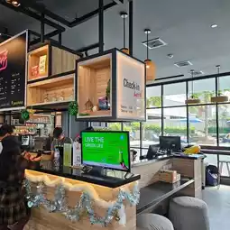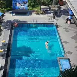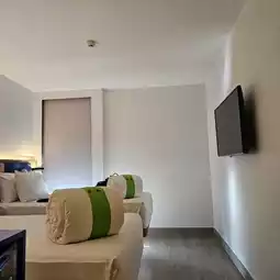 Cozy Pattaya Hotel is a modern style hotel with colorful interior decorations. It has chic, cute, cool furniture and beautiful neon lights that are decorated inside the hotel, making the atmosphere in the hotel fun and not boring. The check-in lobby is right at Cafe 247. This cafe and lobby are open 24 hours a day. You can come to work or relax. There is also a Social Club seating area. There are many seating areas to choose from, including tables and sofas, or you can sit at the bar overlooking the swimming pool, which is also chic. The rooms are narrow and not very big. The room size is 18-20 square meters, with 2 types of beds to choose from: single bed and twin bed. The view is both the city view and the swimming pool view. The interior of the room is decorated in the same style, clean, with an emphasis on white and blue, making it look warm, clean, safe, with cool air conditioning and very strong Wi-Fi. The location is in a very good area, in the North Pattaya-Naklua area, near Wong Amat Beach. You can walk there to relax. It is not far from Terminal21 Pattaya shopping mall. There is a 7-11 and Tops Daily store in front of the hotel to serve you. There is a cafe that is not far from the hotel. Considered to be a complete stay here, suitable for a good weekend getaway in Pattaya.