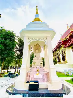 Many people flock to Wat Phutthiwararam (Wat Krathing Rai) 🌟 to pay respects to the Phra Phutthanirodharangsi, dressed in royal attire, as well as the relics of the Arahants, and other sacred objects within the temple. This image brings blessings for auspiciousness, stability, and advancement in business, according to individual beliefs. They also admire the striking architectural beauty of Wat Krathing Rai. 😇💖📸