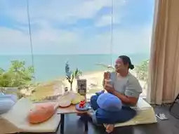 Som Beach Cafe is located in the Golden Tulip Beach Resort Pattaya, giving off vibes similar to a cafe in Busan, with a Korean feel. This seaside cafe is perfect for relaxing while sipping on a cold drink. They offer a variety of snacks and beverages. Additionally, you can enjoy a distant view of the Sanctuary of Truth from the beach area of the cafe, making the atmosphere even more relaxing. There are plenty of photo opportunities, and you can walk along the beach to Wong Amat Beach. The staff are friendly and provide good service.