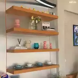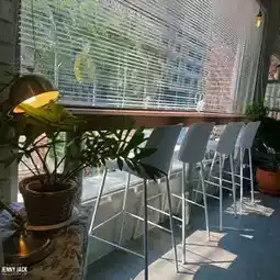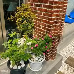 The shop is decorated in brown tones with brown bricks in front of the shop.