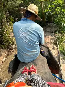 I tried riding an elephant for the first time and I must say that it was so exciting! ๐โจ The feeling of sitting on an elephant's back is both new and fun at the same time. ๐ Along the way, I saw the natural scenery around the village. ๐ณ๐พ I saw a lush forest with a small stream flowing through. The atmosphere was great. The elephants here are all cute and kind. They walk around in a relaxed manner. ๐พ Making riding an elephant an experience that is both fun and relaxing at the same time. After riding the elephants, I also had the chance to feed the elephants myself! ๐ฅฐ The elephants are very good at eating bananas and sugarcane. They even used their trunks to pick them up from our hands very gently. ๐โจ It was so good to see them happy while eating. It was like we were able to make them smile. ๐
