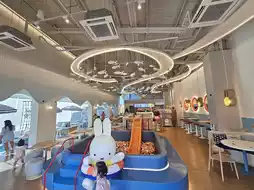 This is a Miffy rabbit cartoon cafe located in Pattaya City, Chonburi Province. In front of the shop, there is a Miffy cartoon character standing to welcome customers. When you enter, it's like you've entered Miffy's town. Every table has a Miffy doll sitting. There is a large ball pit and a slide in the middle of the shop for children to play. There are many cute photo corners, very suitable for Miffy fans.