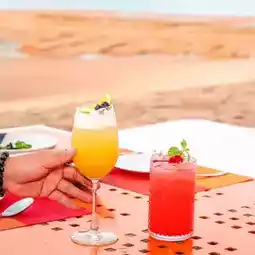 It serves drinks and food.