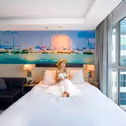 Near tourist attractions, good location, easy to travel Holiday Inn Express Pattaya Central A hotel with a warm atmosphere, decorated in white and blue tones, comfortable to the eyes, beautiful rooms, fully equipped with facilities, there is a rooftop swimming pool on the roof with a view of the city, I must say that the feeling is very good and there is also a fitness center and a variety of breakfast lines, very delicious. Anyone who comes to Pattaya and is looking for a place to stay with a good atmosphere like this, I recommend it. #pattaya #hotel #travel #review of beautiful accommodations #accommodation with a good atmosphere
