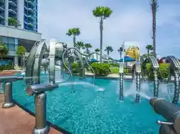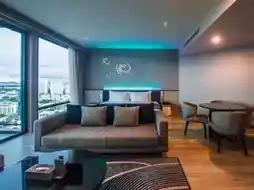 #Get a discount without relying on luck Grande Centre Point Pattaya Bring your family to relax at a luxurious hotel in Pattaya. Accommodation with a large water park decorated like space. Inside the hotel, the color scheme is blue sea, which is pleasing to the eye.