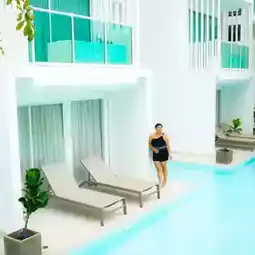 Today, Nicky came to stay, recharge near home. 🏠 This hotel is located near Wong Amat Beach. Just a few steps from the pool to the beach. The new zone must be a hit. ❤️ For those who love taking pictures, the accommodation is beautiful and decorated in white tones. 📸 There are many photo spots. Today, Nicky came to stay in a 2 Bed Room Pool Access room that can accommodate four people. The interior is divided into 2 bedrooms and 2 bathrooms. You can come as a family. 🎊 Or a party party 🎉 with a gang of friends.