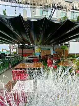 ❤️The shop is an outdoor with a canvas roof, decorated in a beach style, located on Jomtien Beach. At night, there is live music to listen to and chill.