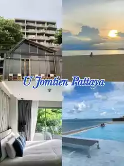 🏖️ U Jomtien Pattaya, accommodation on Jomtien Beach. In the evening, take a leisurely stroll near the famous restaurant, Poo Pen Seafood. It is not far from the hotel. Jomtien Beach is not very crowded. On top of the hotel, there is a rooftop restaurant with a high-angle view of the sea, an infinity pool, and a fitness center with a rooftop view.