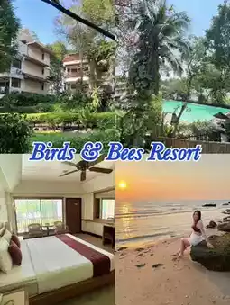 🏖️ Birds & Bees Resort, accommodation on the beach, is on Khao Phra Tamnak. There is a walkway down to the beach. It is clean and private. You can swim in the sea. The rooms may look old, but they are clean and well-maintained. The hotel has a great vibe. There are big trees, shady with a variety of plants, a stream, an artificial waterfall, and 2 saltwater swimming pools. The first one has a sea view and the other has a beautiful garden view. There is an international restaurant with delicious food and good service. Most of the residents are foreign tourists.