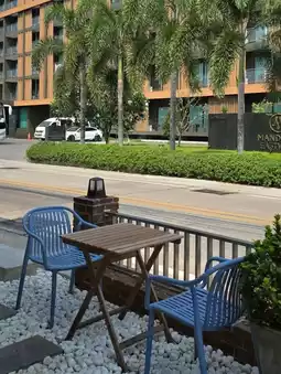 It has a striking design with a red brick building with a curved door frame. It is simple but charming like being in a foreign country. In front, there is an outdoor seat for you to sit and relax.