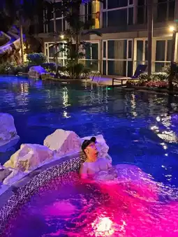 #Lowrise accommodation, share the location of the accommodation #Songkran, come relax at #Pattaya, play water to cool off, stay at Azure Hotel Pattaya, travel and relax safely, no need to worry. From the past events, Pattaya is still worth visiting, not affected by the earthquake. The rooms are nice, breakfast included, with a large swimming pool, 3 slides, play until 20:00.