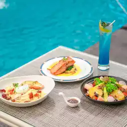 Great atmosphere by the sea and swimming pool, with live music to listen to and chill