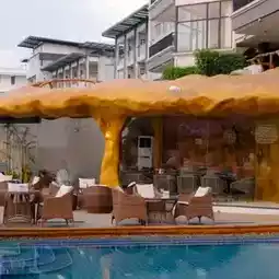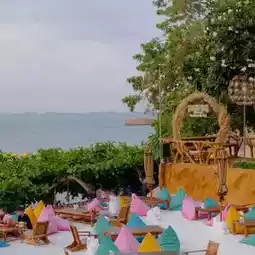 This is a cafe and beach club in the Pattaya area. The shop is incredibly magnificent, with a large waterfall and a full sea view. The shop has many seating areas to choose from. There are a lot of seats, both by the sea, by the waterfall, or for those who want to sit and cool down, there is also an indoor area inside. In the evening onwards, there will be live music playing in the courtyard in the middle of the shop. You can sit and chill until late at night. As for the night onwards, there will be a beautiful light show at the waterfall.