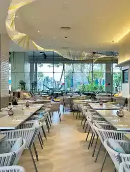 The beach is just a 5-minute walk from the hotel. After a tiring day, I really enjoyed the food at several of the hotel's restaurants, especially the seafood buffet dinner at the main restaurant, Waves & Wind - rich in variety, fresh ingredients, delicious, and great value! The rooftop restaurant, The Sky 32, has an amazing atmosphere with extremely romantic night views. The most lively area at Grande Centre Point Pattaya Hotel is the pool area, where the main pool looks like a huge sapphire nestled among the buildings, while the children's water park is the most popular attraction. There are several cabanas around the water park and pool where you can order drinks and snacks from the pool bar - it's also wonderful to enjoy a leisurely afternoon here!