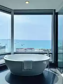 Grande Centre Point Pattaya Hotel is a convenient place for dining, drinking, and entertainment - perfect for family trips or girlfriend getaways to Pattaya. The rooftop sea view pool at sunset is absolutely stunning! Whether from your room, the pool, or the restaurant, you can enjoy panoramic views of Pattaya Bay from various angles, making for fantastic photos! The location is superb! Terminal 21 shopping center is right downstairs, making dining, entertainment, and shopping very convenient. The hotel also has a Let's Relax SPA massage shop with direct access to the mall. Every Grande Centre Point hotel has a Let's Relax, and this one has two entrances - one in the mall and another on the 1st floor of the hotel with elevator access - extremely convenient for guests!