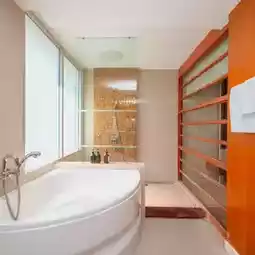 2 bedrooms, 2 bathrooms, with a bathtub and a wide balcony