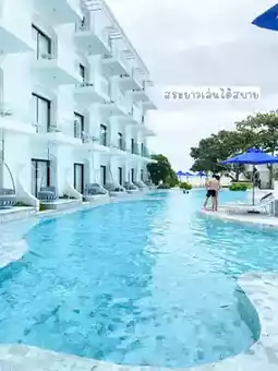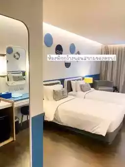 🏖 The accommodation is so beautiful that we want to go back again because it is very close to Bangkok. We give it to Kram Pattaya. The accommodation is beautiful, the rooms are spacious, and there are complete facilities. The hotel's theme is blue, white, and navy blue. The theme is very controlled. Plus, the price is not too high. A budget of 1,000 baht per person is enough. My friends and I booked 3 rooms and got adjacent rooms, so they are connected. It's very worthwhile!