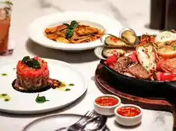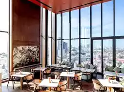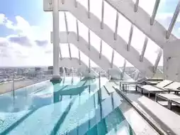 There are bars, sitting areas and a swimming pool where we can see