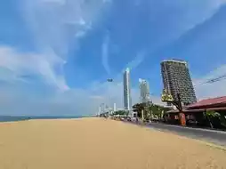 ⛱ Na Jomtien Beach is one of Pattaya's most popular beaches that never disappoints. With its wide sandy shores, fine sand, and clear waters, it's perfect for swimming and relaxing by the sea. There are plenty of activities to enjoy, such as renting jet skis, riding banana boats, or simply chilling by the beach with a refreshing drink. Additionally, there are numerous fresh seafood restaurants to choose from, or you can take a stroll through the beachside market for a different vibe. If you're looking for a seaside getaway near Bangkok, Na Jomtien Beach is a highly appealing option. Especially in the evening, the area comes alive with street food vendors, making it a great spot to relax and watch the sunset.