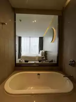 Hotel 🏖️ Environment / facilities: very good, very beautiful view, very organized management, the accommodation smells good, the lighting system in the room is convenient, there is a touch screen lighting control system at the head of the bed, can open and close the curtains automatically, and the automatic control system of the lights can be selected. The swimming pool is beautiful, the view from above is very impressive, cool and comfortable. Breakfast is the best, there are many to choose from. Very worthwhile.