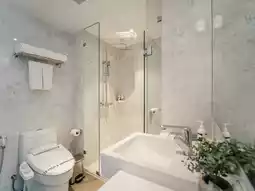 🛏️The rooms are spacious, divided into two bedrooms, both with en-suite bathrooms and bathrooms that are clearly divided into zones, making them more convenient to use. There is also a bathtub that helps to relax guests. There is also a spacious common room, suitable for various activities, such as watching movies or working. Importantly, there is also a balcony that opens out to view the accommodation comfortably.