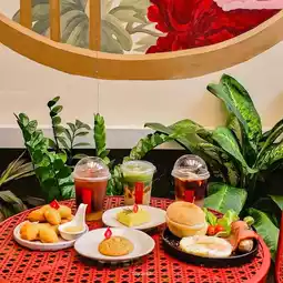 The shop has 3 floors of seating. The first floor is a cafe zone. The second floor has tables and chairs to match the atmosphere of the shop. This area is divided into 2 zones: an indoor air-conditioned zone and a semi-outdoor zone with a small garden. This zone has beautiful lighting for taking pictures. The third floor is a private room that can accommodate 8-10 people, suitable for small meetings or seminars.