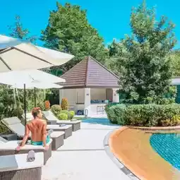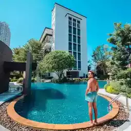 A city hotel in Pattaya that combines modern sophistication with a sense of comfort. The design is sleek and contemporary, featuring a bright white building that exudes simplicity and elegance, perfect for photography. The atmosphere is peaceful, private, and surrounded by nature.