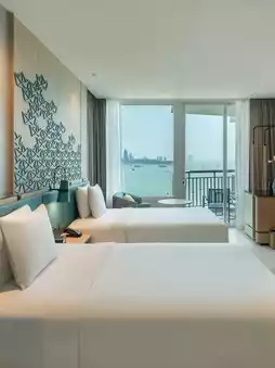 - Booked a twin-bedroom bay view suite with my girlfriends - high floor, quiet and bright, directly facing the Gulf of Thailand, absolutely chill.