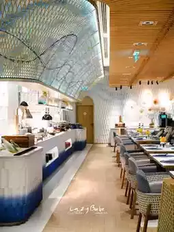 There are also many check-in points for restaurants in the hotel, both the chic beach club Lay Beach Club in the previous post, the Japanese restaurant Den Japanese Restaurant in the previous post as well 😆 There is also a Thai restaurant Sanehh Sarae, Chinese food YiTong Chinese Restaurant & Sky Bar, a lounge Chon Lounge or a poolside bar like Lula Pool Bar, very cute, you can't miss the pool area. Taking pictures is so much fun. The vibe is super good. ✨🍹The Kids' Club is also cute. To be honest, we didn't even get to explore all the places as written. The time was a bit short for 2 days and 1 night. 5555 😂 And the breakfast is sooo good. There are many to choose from. I like that there is a chili paste set. I like it so much. 🤣 The dessert and bakery zone is also delicious. I like it. Everything is delicious. ~ 💕 The staff are kind and provide good service. I will definitely go back again. Impressed.
