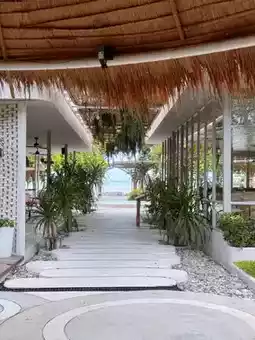 Located by the beach in Pattaya 🌊, this restaurant boasts a stunning tropical ambiance. With its thatched huts and lush greenery, it feels like you've been transported to Bali or Hawaii! 🌴🌺🌅 Upon entering, you'll find a spacious dining area with both indoor and outdoor seating. The outdoor seating offers breathtaking sea views, especially during sunset when the colors of the sky and ocean blend beautifully—it's a photographer's paradise! 📸🌈😍 The restaurant also features thoughtfully designed photo spots, such as bamboo decorations and floral arrangements, perfect for Instagram-worthy shots! 🎥🌸🎆