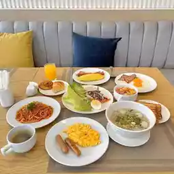 As for breakfast, it's a buffet. The food line here is huge. There's Thai food, international food, salads, fruits, bread, coffee, everything is complete! 🥐🥯🥛🧀🍳🥓🥗