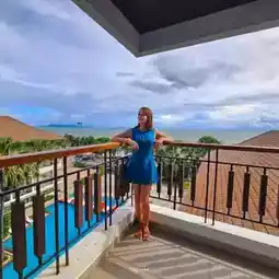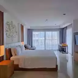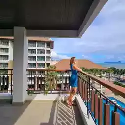 It is a corner room with a balcony on two sides. You can see both the pool view and the sea view from the balcony. The room is very spacious. It is well separated. Both the bedroom and bathroom area. The bed is very soft and comfortable. The bathroom is also large. The dry and wet areas are separated. There is also a bathtub for you to relax in.