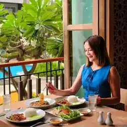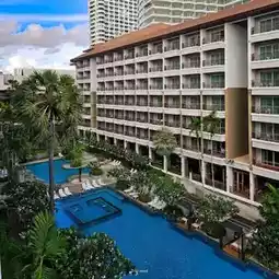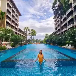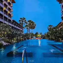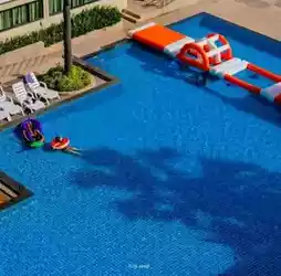 A large swimming pool in the middle of the hotel Surrounded by beautiful rooms, there are 3 pools. If you come with children, there is a children's pool with a slide to play with. Definitely fun.
