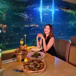 Wan had dinner at Oceana restaurant, sitting right in front of the aquarium, a 6-meter-long aquarium, watching the sharks swim back and forth, it was like eating in a real aquarium. The food was both Thai and international, everything was there.