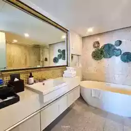The highlight that I like the most is the giant aquarium in the restaurant and the rooftop with a swimming pool on the roof with a 180-degree view of the Gulf of Thailand. There is a bridge connecting the 2 buildings. Taking a picture from this angle is very beautiful. On the same floor, there is also a rooftop bar called Aquario. In the evening, the atmosphere is very good. Sit and sip a drink. Watch the sunset, so awesome