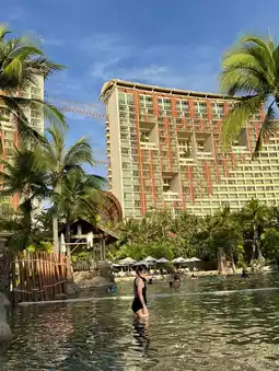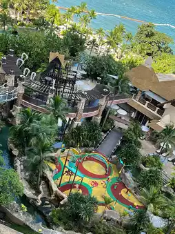 Upon check-in, guests are greeted with a welcome drink. The room offers a spectacular view of the water park. Walking around the water park, you'll find numerous beautiful photo spots, especially during the daytime when the lighting is perfect.