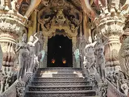 ✨ When you step inside, it’s truly breathtaking. The sculptures that embody Thai, Hindu, and Buddhist philosophy speak to you from all directions, and the warm scent of wood envelops the space.