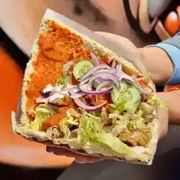 - DONER KEBAB “THE ORIGINAL” WITH CHICKEN ชิ้นใหญ่มากเป็นขนมปังแซนวิส ตรงกลางจุใจไปด้วยผักสดและเนื้อไก่ราดด้วยซอสฉ่ำๆ