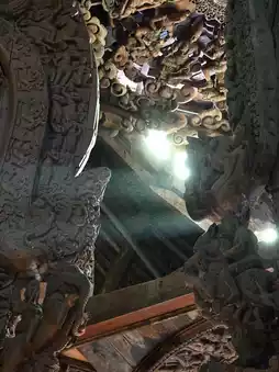 The Sanctuary of Truth isn’t just a building—it’s a living dialogue between humanity and eternity. Since 1981, artisans have carved 3,700 ancient logs by hand, without a single nail, transforming wood into wisdom. Every chisel strike etches Hindu, Buddhist, Taoist, and Khmer philosophies into soaring 105-meter spires.